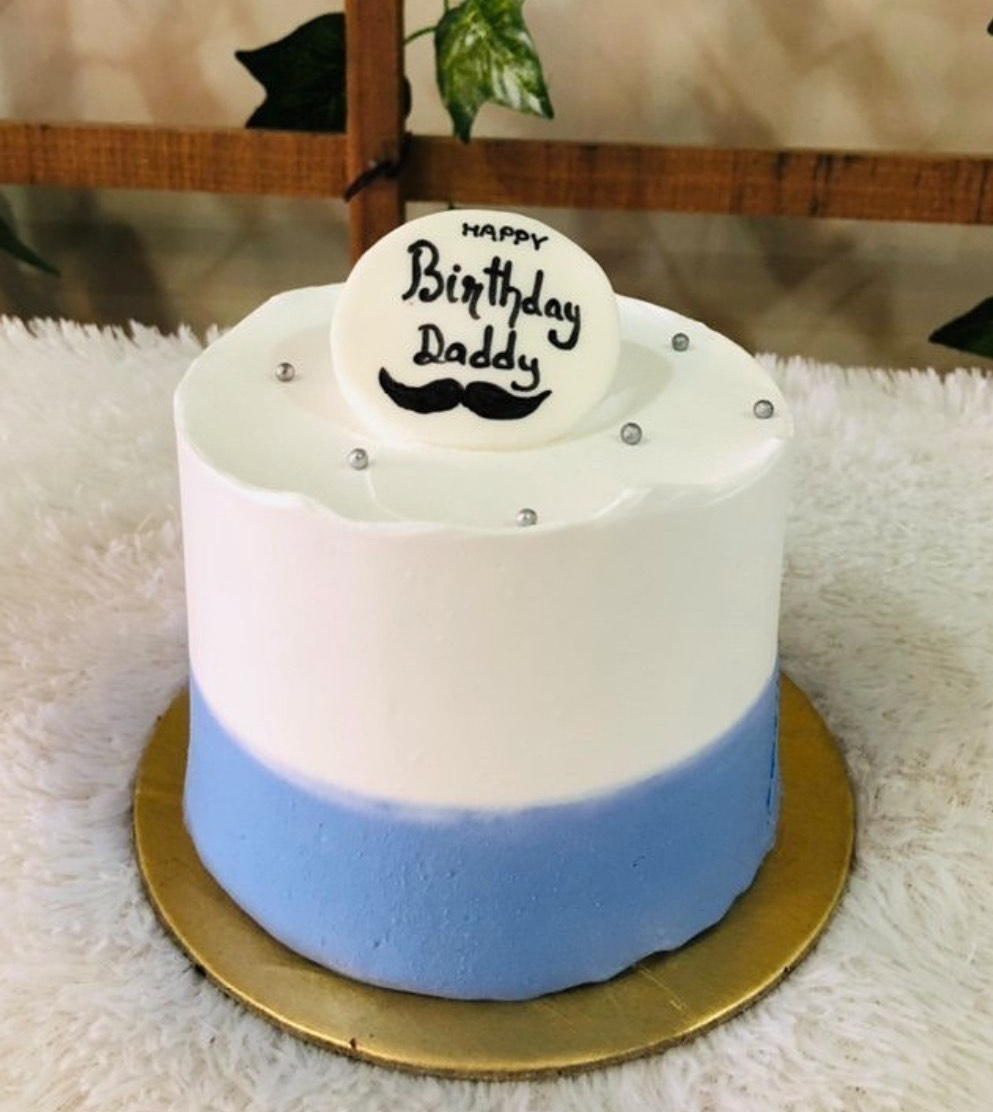 A charming and stylish cake featuring smooth frosting, neat edges, and a playful moustache design — the perfect choice for celebrating dads with a touch of fun and love.